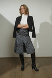 Tights are your best friend when it gets cooler outside. For a warm and stylish look, wear your midi skirt with thick tights and knee-high boots. Your outfit will look more interesting if you mix and match different colored, patterned, and textured tights and boots.
